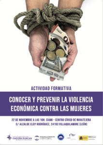 El próximo 22 de noviembre nos trasladamos al Centro de Información y Asesoramiento a la Mujer eIgualdad (CIAMI), en el Centro Cívico de Navatejera (Villaquilambre, León), para conocer y prevenir la violencia económica contra las mujeres.